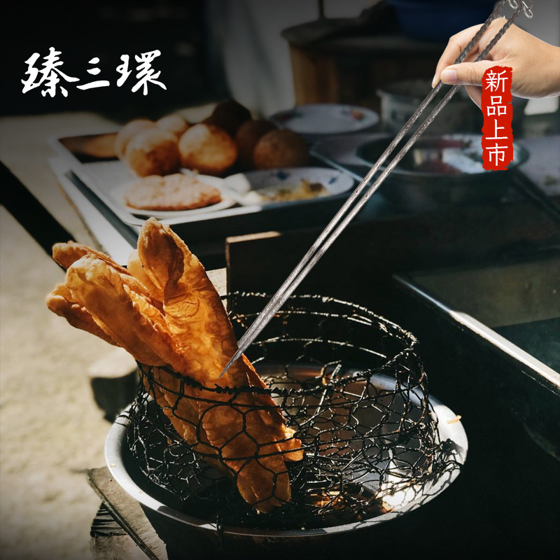 Zhen Three-ring Iron Chopsticks Hand Forged and Hot Pot Chopsticks Lengthened Chopsticks Fried Fried Oil Strips Home Non-slip Anti-Scalding Chopsticks