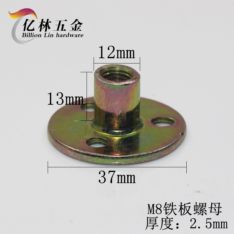 Iron plate nut furniture splint nut lock nut sofa foot lock nut three-hole nut M6M8