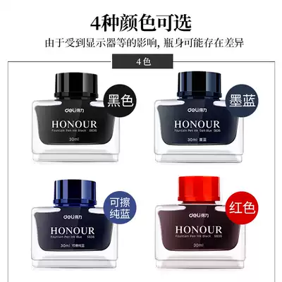 Del S636 ink pen ink students use non-carbon pen ink dye type non-blocking pen black ink blue erasable pure blue teacher writing tool red ink