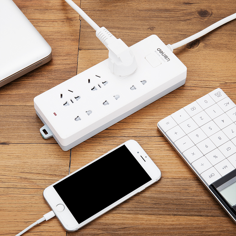 Deli (deli)18255 new national standard 6 2 meters large hole distance master switch socket plug and socket line
