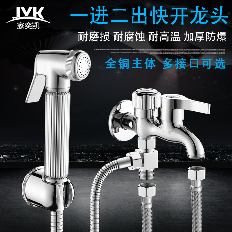 Full copper double use tap spray gun suit multifunction washing machine mop pool water nozzle double head multipurpose one-in-two out