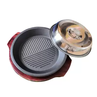 Teppanyaki cast iron round thickened barbecue tray household gas commercial barbecue Korean 24cm