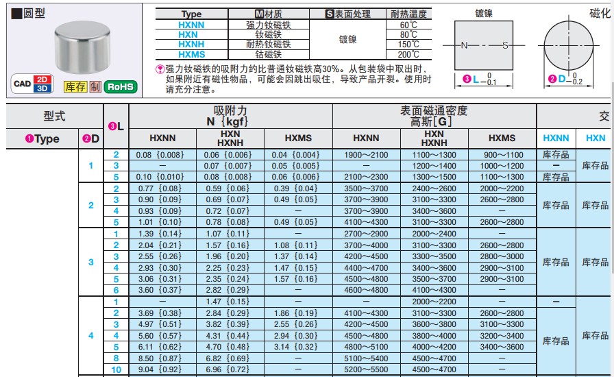 Powerful round magnet HXN1 2 3 4-1 2 3 4 5 8 10