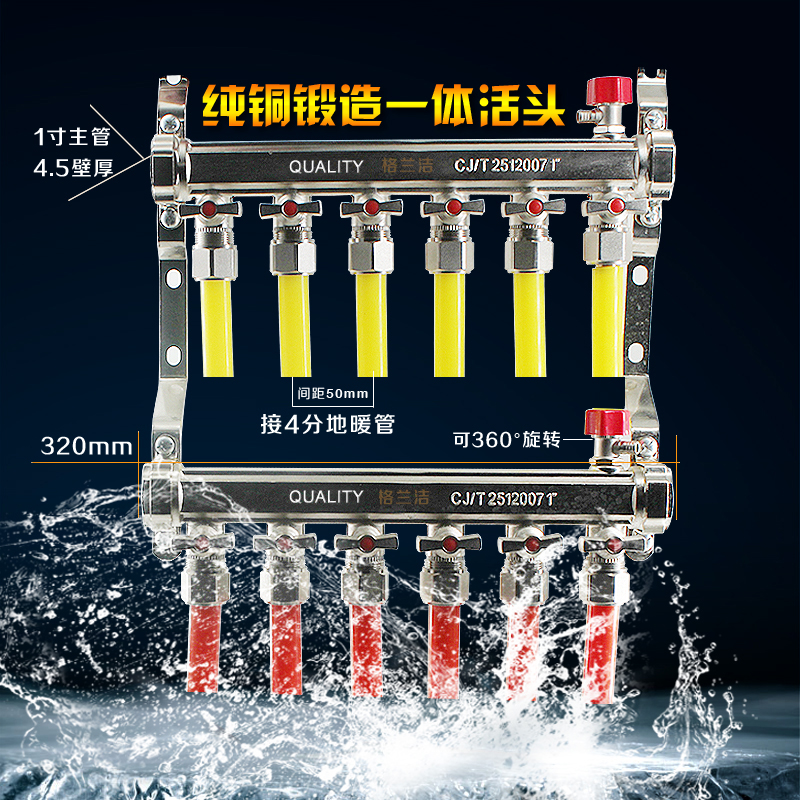 1 inch 20 geothermal water separator 4-point water separator 5-way 6-way floor heating water separator All-copper integrated water collector accessories