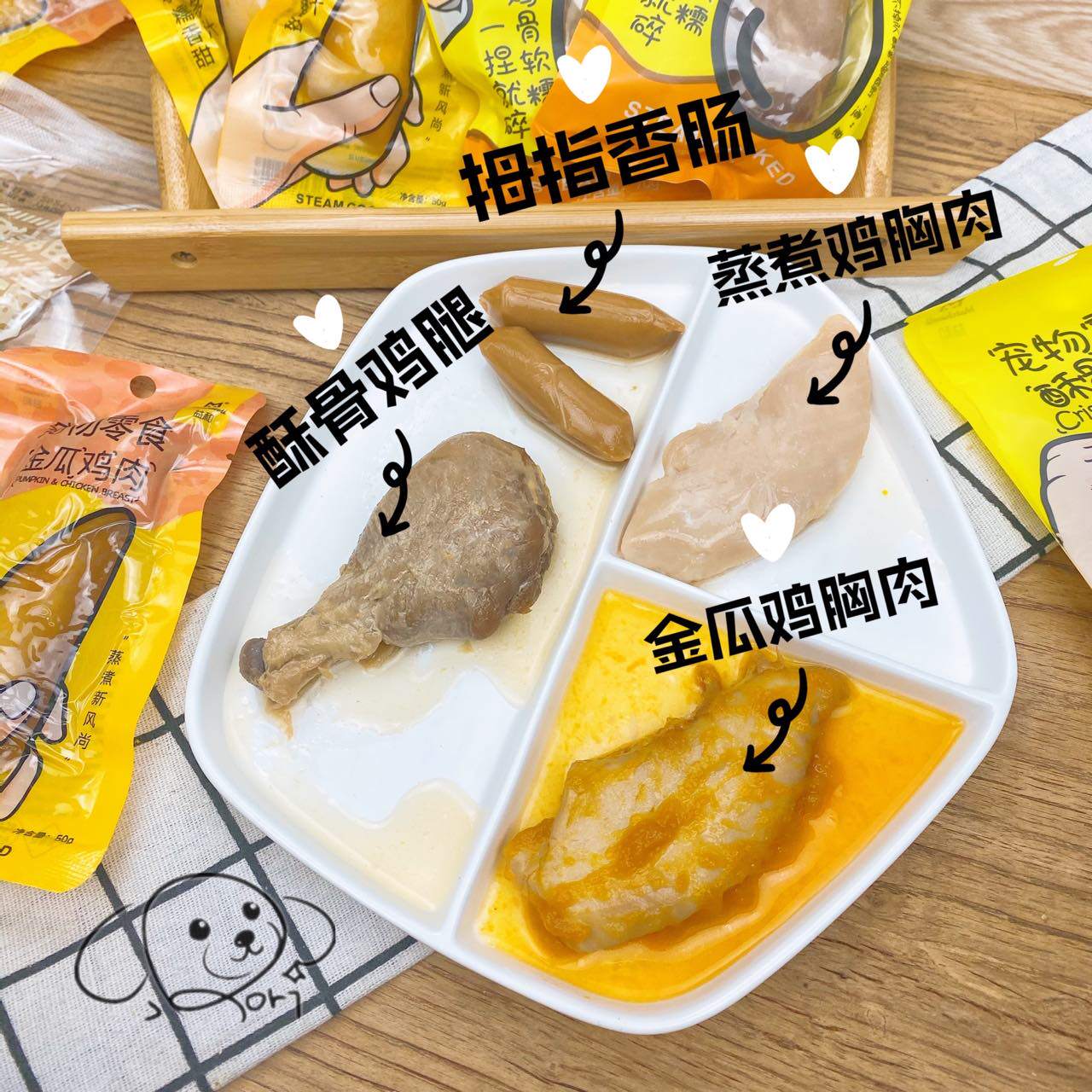 Pumpkin Chicken Breast (1 bag 50g) Cooked Chicken Breast (1 bag 50g) Crispy Bone Chicken Thigh (1 bag 70g) Thumb Sausage (1 bag 24g) Pumpkin Chicken Breast (Whole Box 1