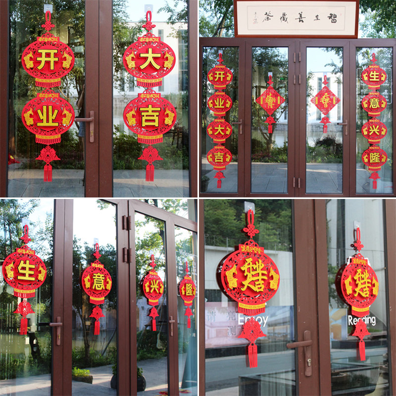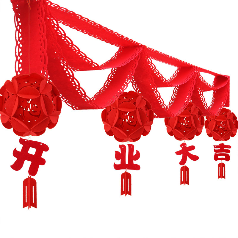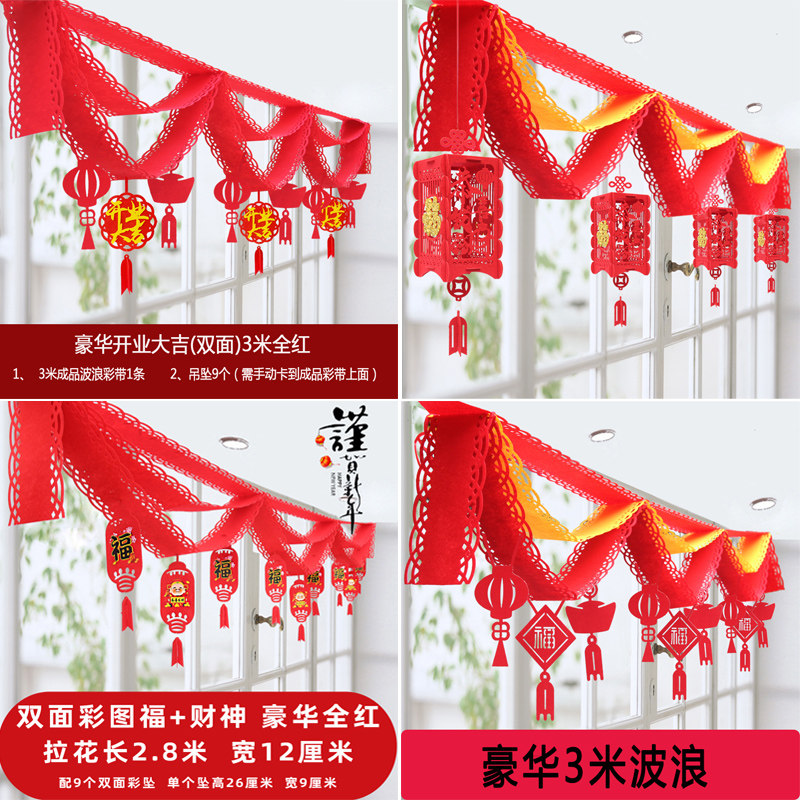 New Store Opening Big Ji Decoration Hanging Decoration Wave Banner Color With Laflower Lantern Anniversary Celebration Arrangement Overhanging Ceiling Indoor Hanging