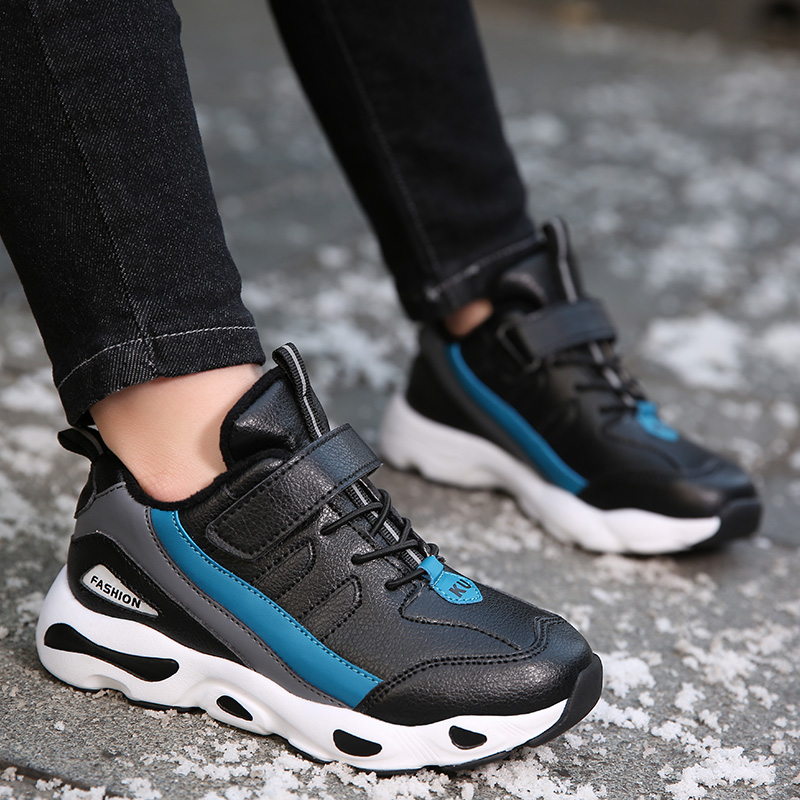 Boy Sneakers 2018 New Cotton Shoes Girl Shoes Winter Medium-high Cylinder Added Suede Leather Face Warm Shoes Children Shoes