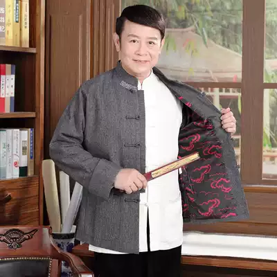 Autumn and winter Tang suit men's long sleeve Chinese style coat thickened wool woolen cotton coat father dress middle-aged and elderly