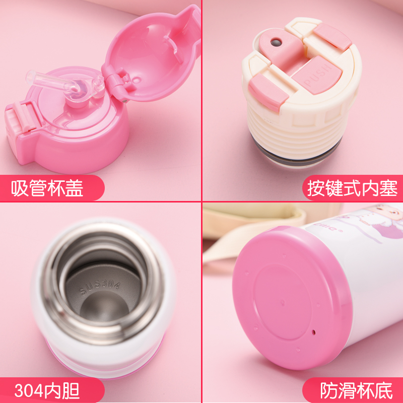 Hile Children Insulation Cup With Straw Stainless Steel Kettle Outdoor Portable Baby Students Kindergarten Resistant Water Cup