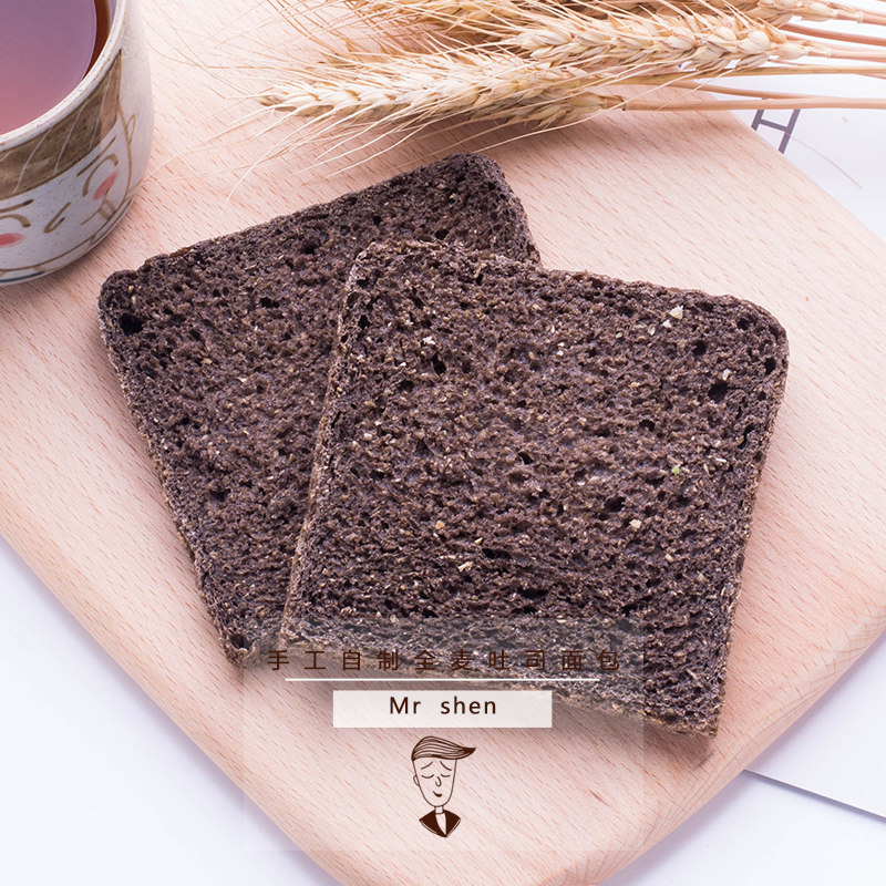 Brother Shen, black cocoa toast, whole wheat bread, sucrose-free, oil-free, miscellaneous grains, fat calorie, low satiety, pregnant women's meal replacement bread