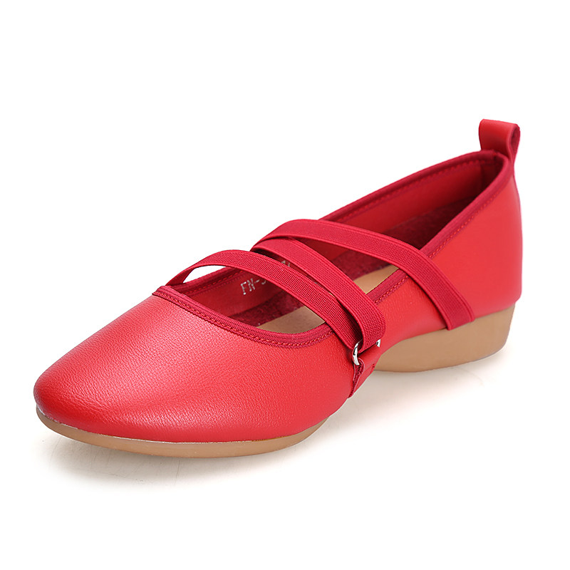 Four Seasons Adults Dance Shoes Women's Bull Fascia Soft Bottom Summer Square Dance Genuine Leather Red Low Heel Dancing Shoes 2018 new