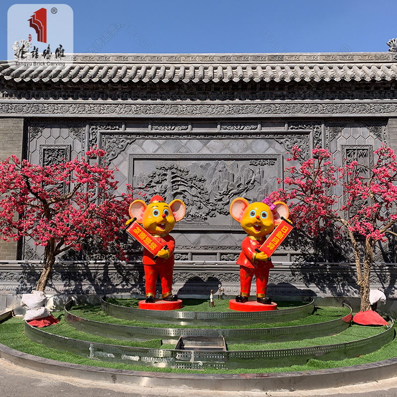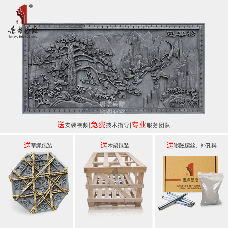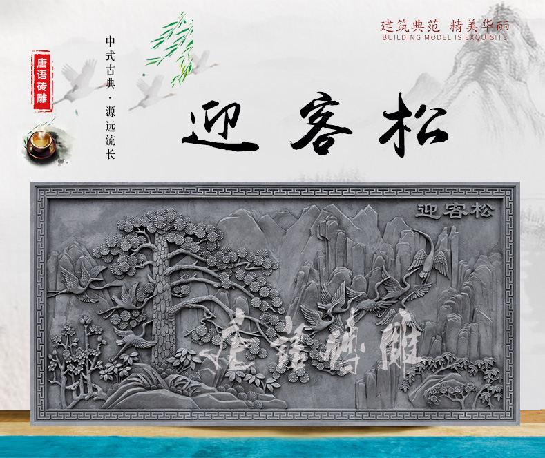 Tang language brick carving Welcome pine old green brick Ancient building brick carving Antique Chinese photo wall courtyard relief decorative hanging decoration