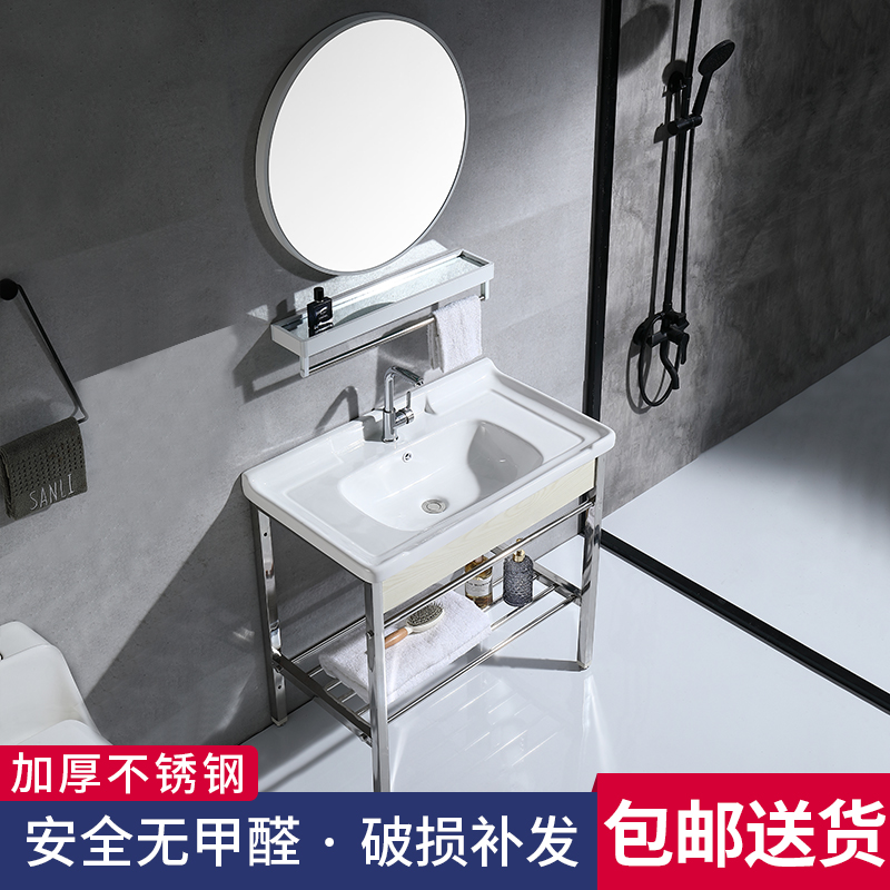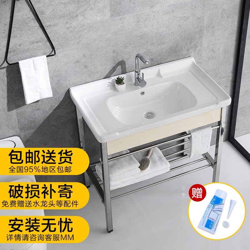 Stainless steel bracket balcony bathroom bathroom bathroom ceramic wash basin washbasin integrated floor-to-ceiling simple washbasin
