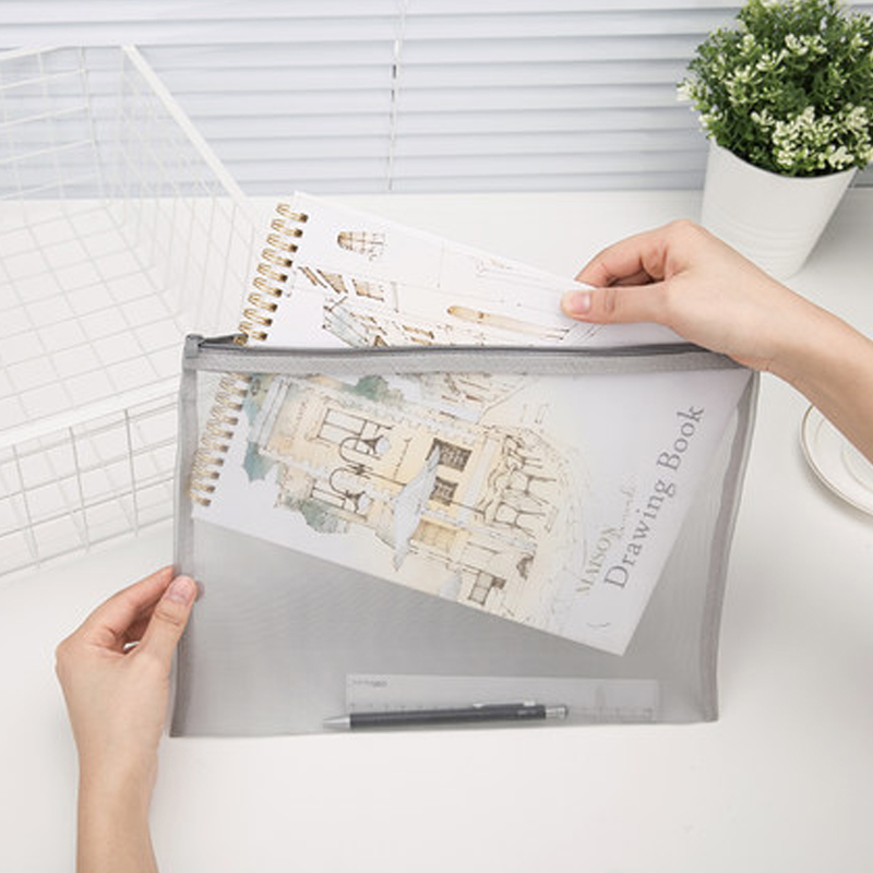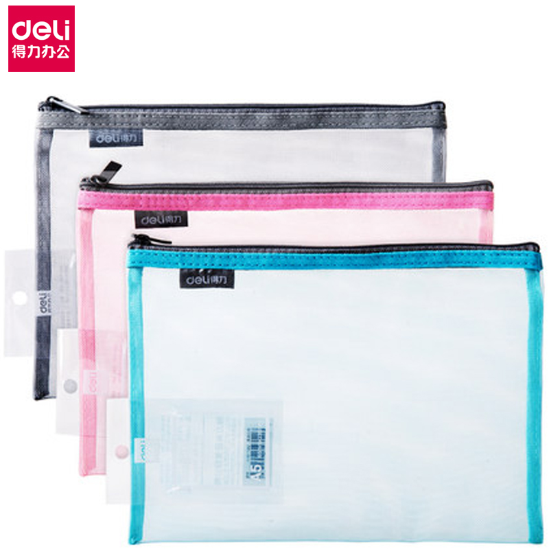Deli mesh zipper bag A5 A4 receiving net Grape edge bag folder examination paper receiving pen bag ticket bag learning stationery information receiving student office color random