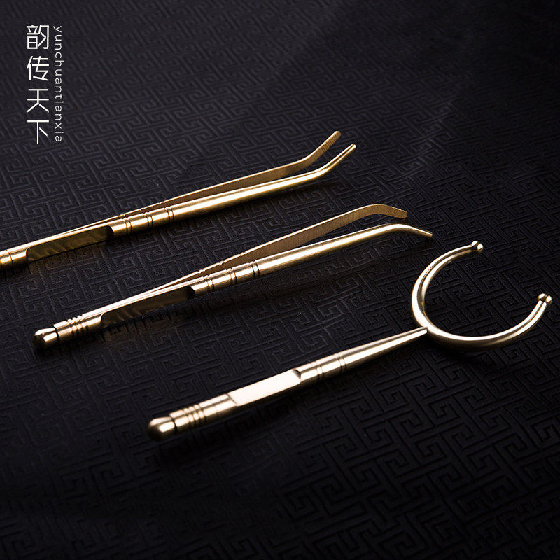 Rhyme spread the world thick copper tea clip kung fu tea set metal tweezers wash cup Cup clip tea set accessories