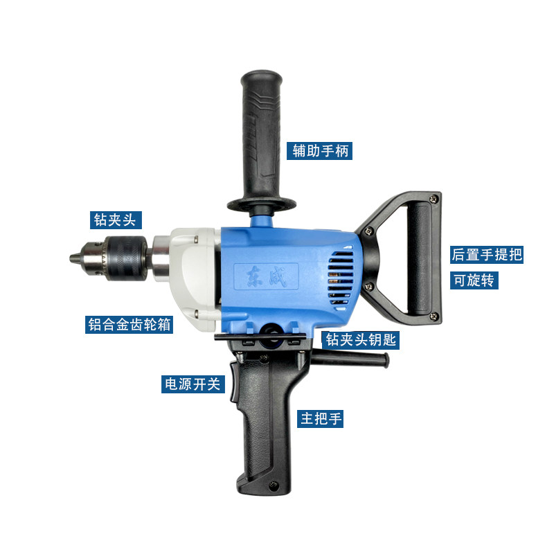 Dongcheng aircraft drill high-power 16A electric drill iron industrial woodworking batch soil paint paint mixer Dongcheng