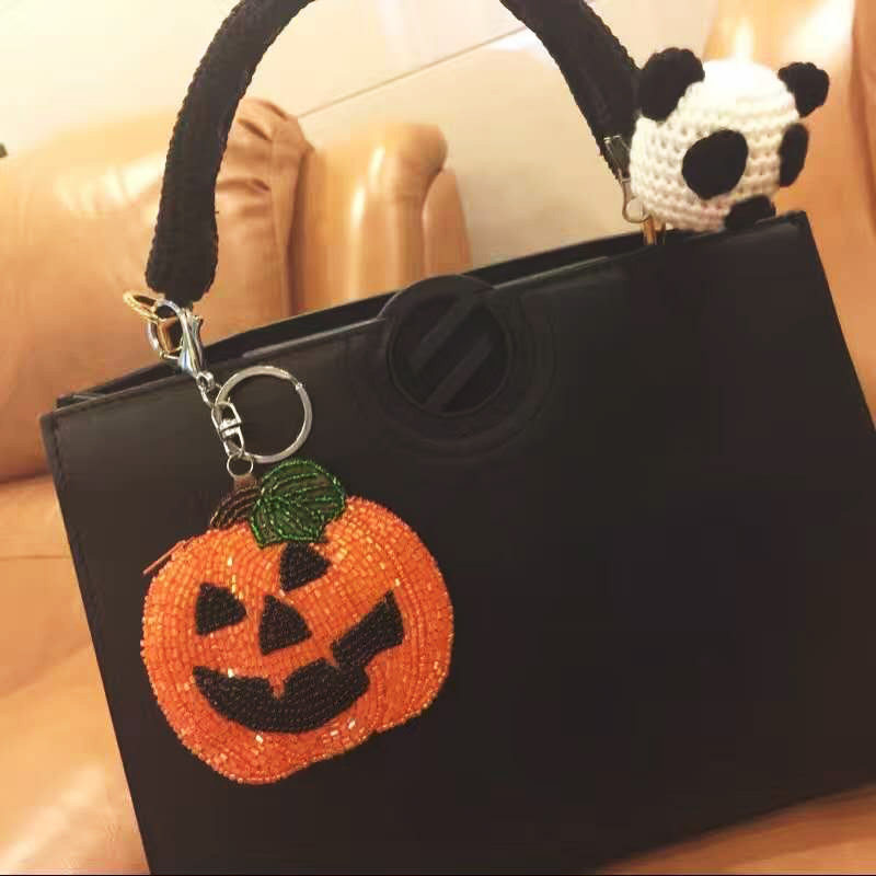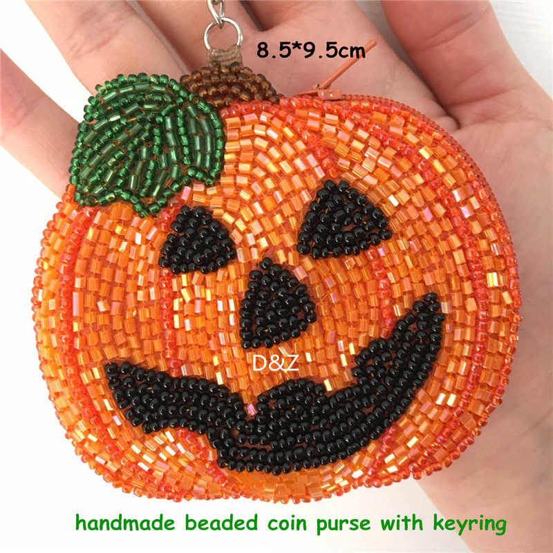 Creative Strings Beads Key Buttons Zero Wallet Handmade Pearl Embroidered Pumpkin Light Mini Coin Bag Pendants Halloween