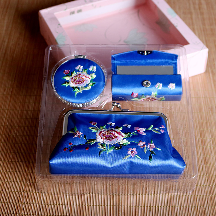 Chinese Wind Characteristics Handicrafts Embroidery Mirror Mouth Red Box Zero Wallet Suit Abroad Gift for Old Foreign