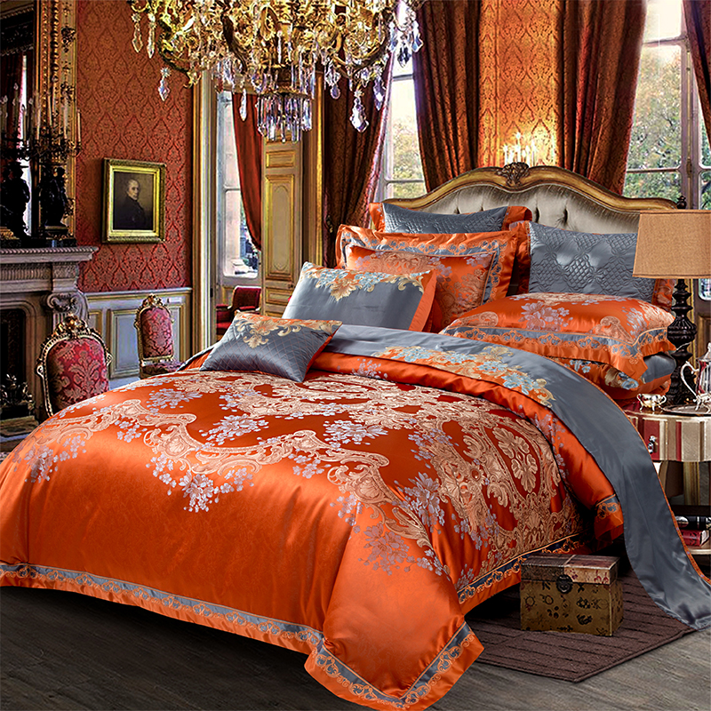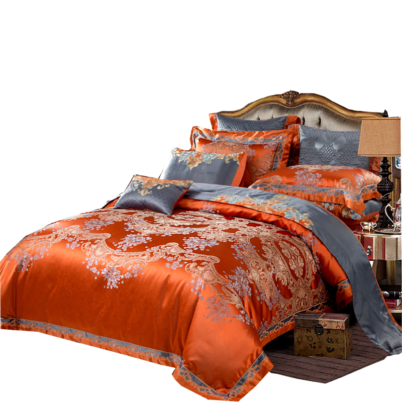 Su Fan's Home Textiles European-style Home Field Garden Floral Orange Bed Bedding Tribute satin jacquard 46 80 pieces