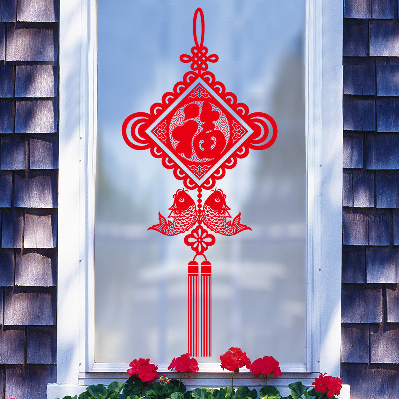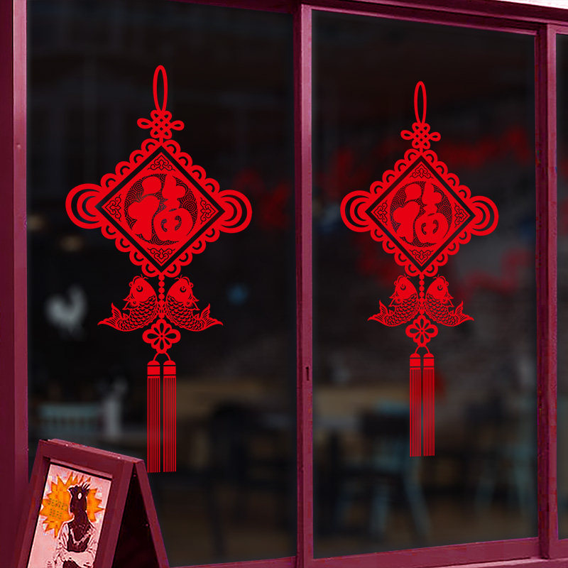 Shop window decorations have been arranged for the New Year Spring Festival glass door stickers window flower wall stickers Chinese knot blessing stickers