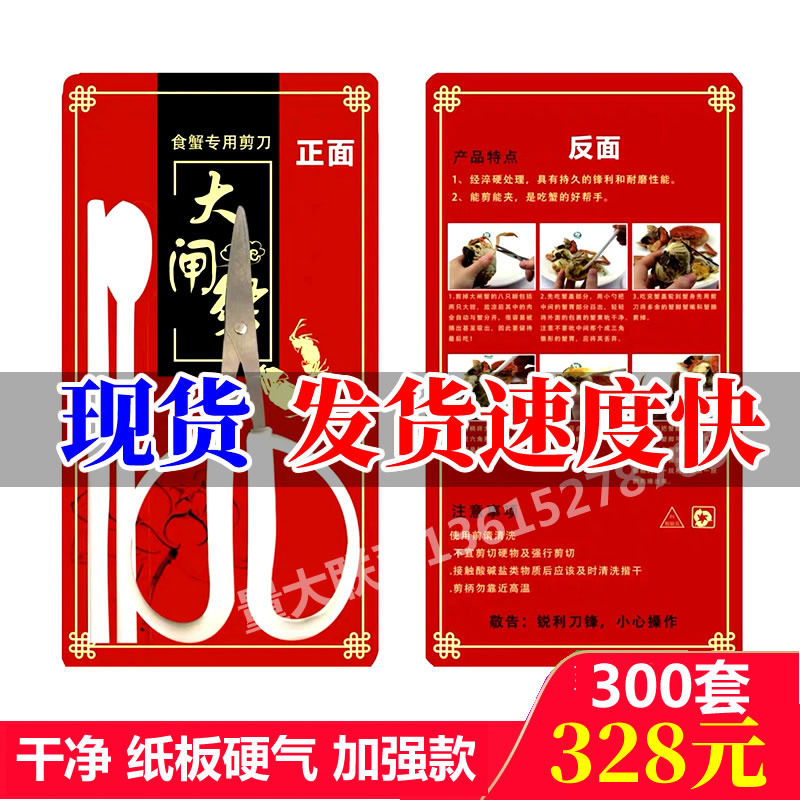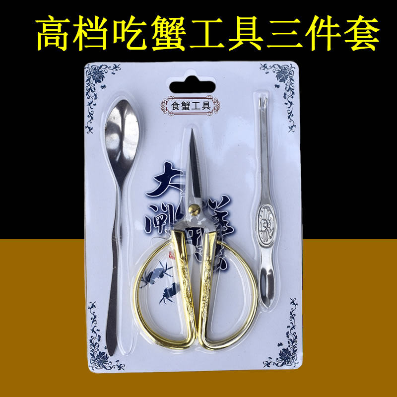 Scissors eat crab tool three-piece set disposable eat hairy crab crab stainless steel plastic scissors whole box 350 sets