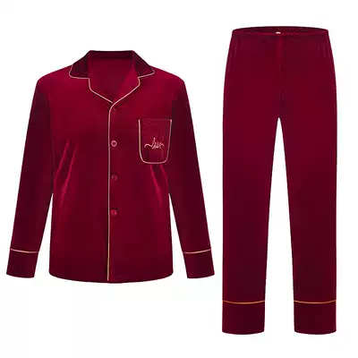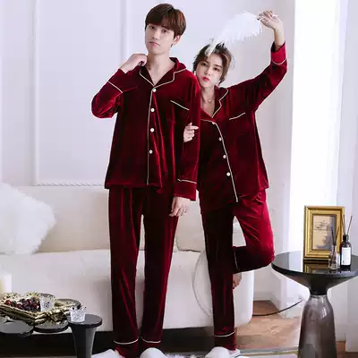 2021 autumn and winter couple pajamas women velvet long sleeve men home clothing Korean shirt two piece set Korean Velvet