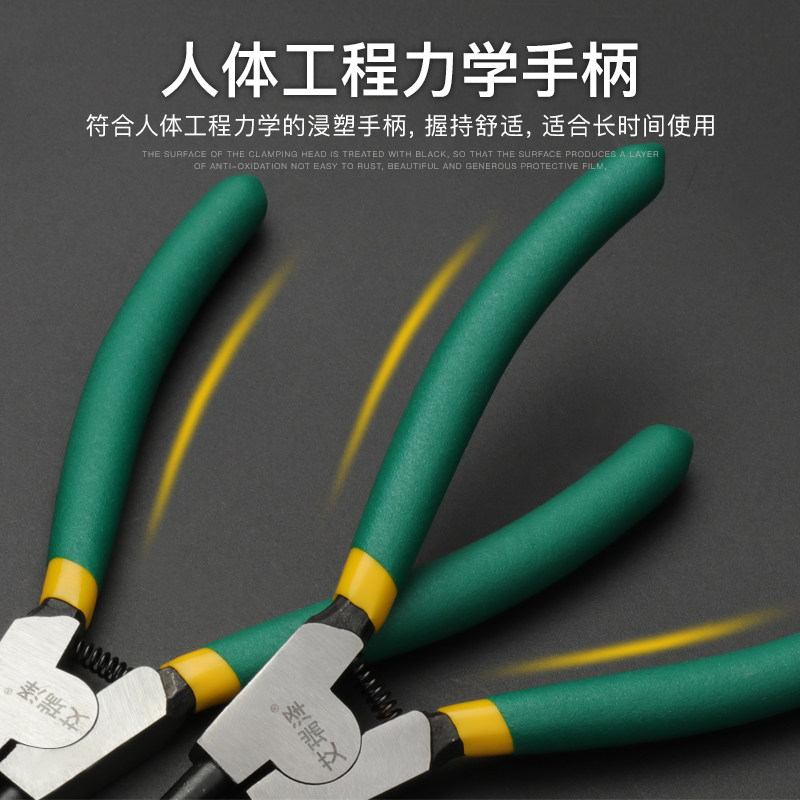7 inch snap spring pliers Inner card outer card yellow pliers Multi-function snap ring C-type buckle e-type inner card outer card straight elbow pliers