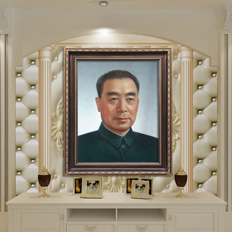 Framed portrait of Premier Zhou Portrait of Zhou Enlai Old mural wall painting Hall decoration painting Great man painting Standard portrait