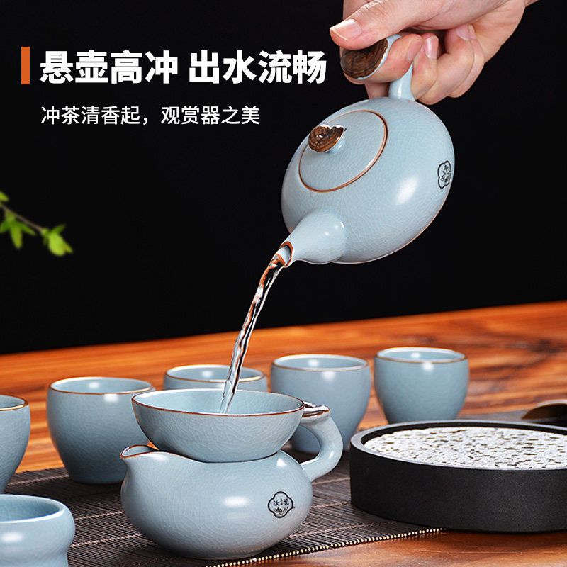 one thousand Comfort Ru Kiln Kongfu Tea Furniture Set Group Home Ceramic Tea Maker Brief set of open sheet Tea Cup Courtesy Kit