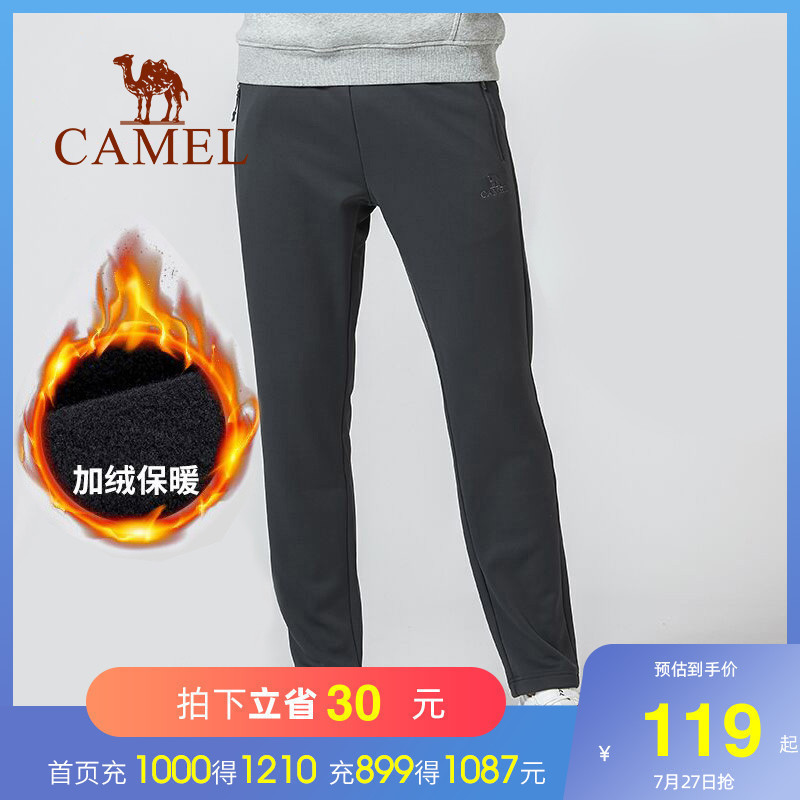 Camel men's velvet thickened sweatpants men's autumn and winter models couple models women's outdoor warm pants men's casual sweatpants