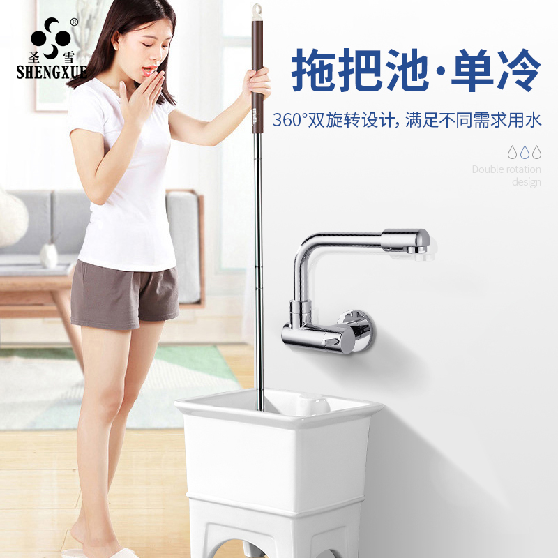 All-copper single cold mop pool faucet In-wall extended balcony laundry pool mop pool splash-proof rotatable household
