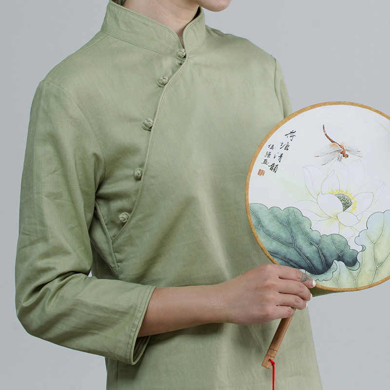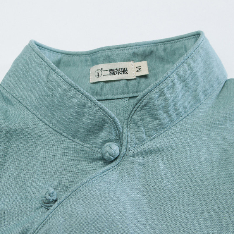 Chan Yi improved Chinese Cheongsam top seven-point sleeve Tang dress women's young version of the top Vegetarian tea women's linen tea dress summer