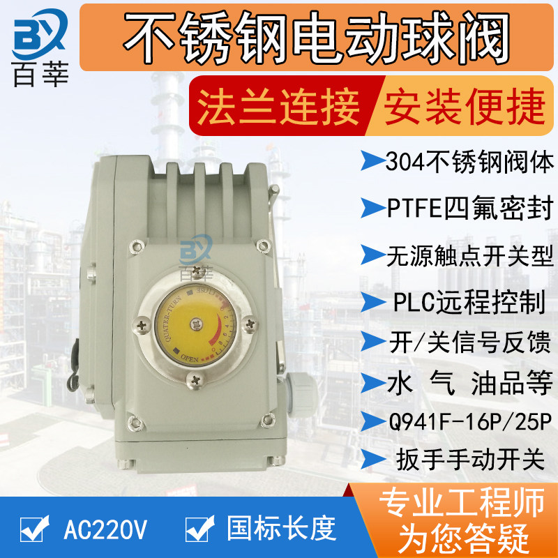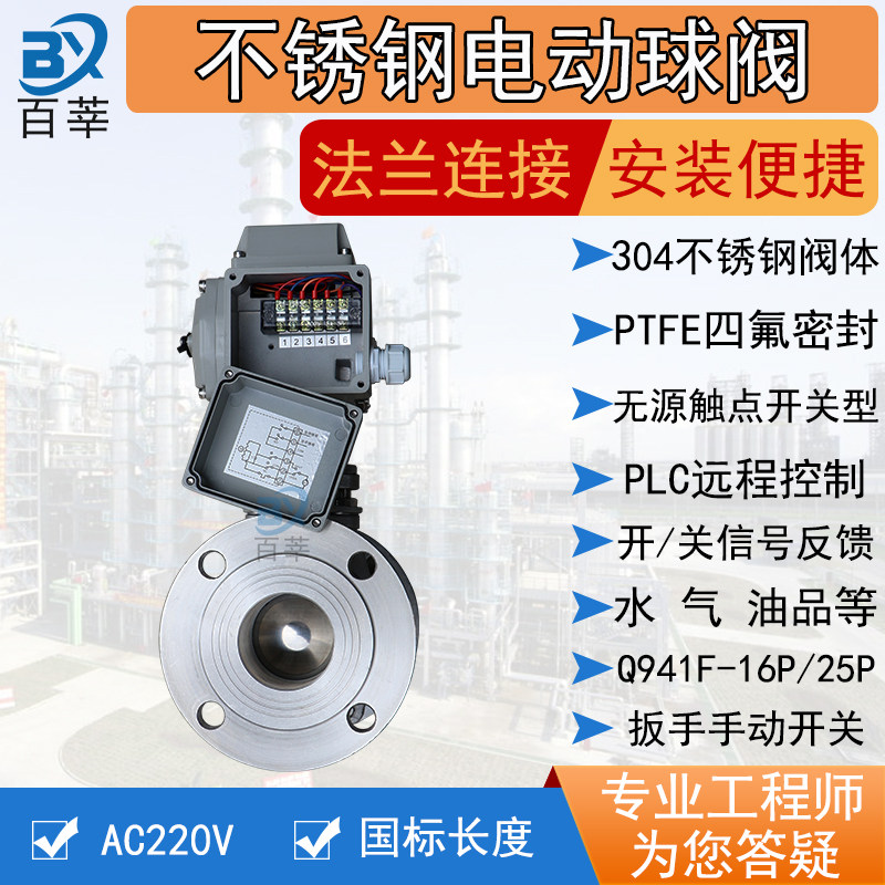304 stainless steel electric ball valve Q941F-16P220V electric actuator passive contact point switch type DN5080