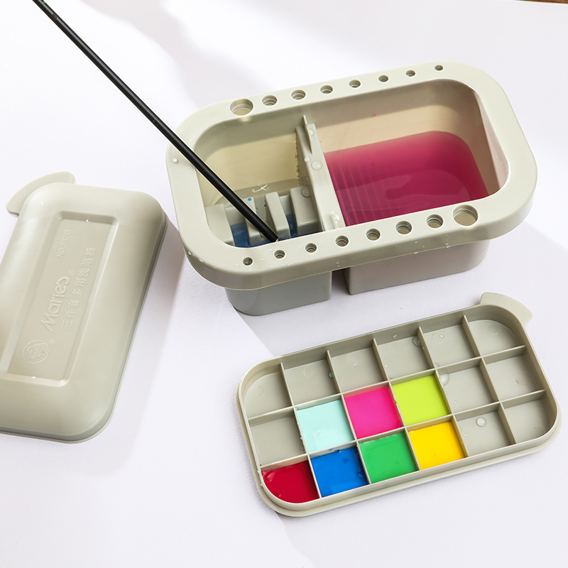 Marley brand multi-function pen bucket 51013 with color palette bucket Art Shabu-shabu pen holder Pigment gouache painting Watercolor painting Chinese painting special oil painting palette Pigment box Pen bucket three in one
