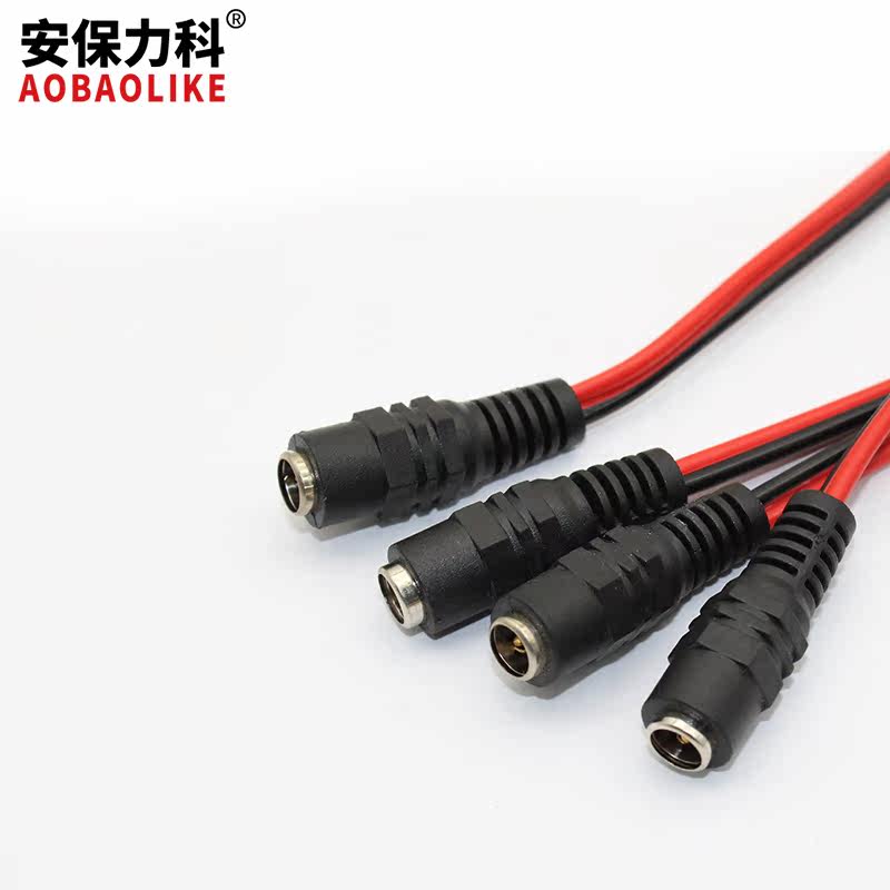 Copper DC female connector power cord 12V red and black line DC female DC5 5*2 1MM monitoring power connector