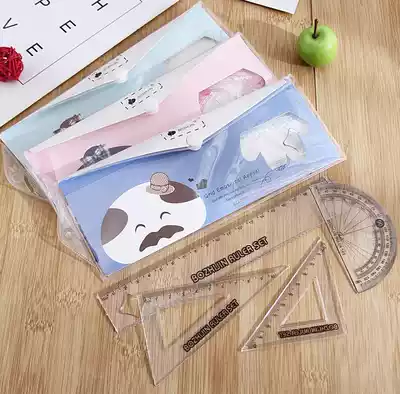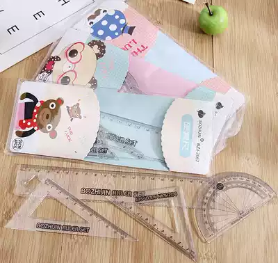 Korean multi-function ruler set Creative student stationery Triangle ruler Triangle set ruler simple four-piece set