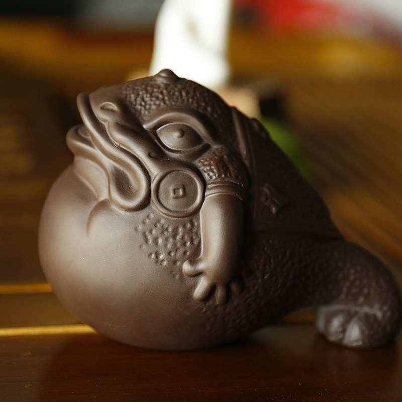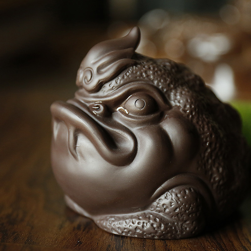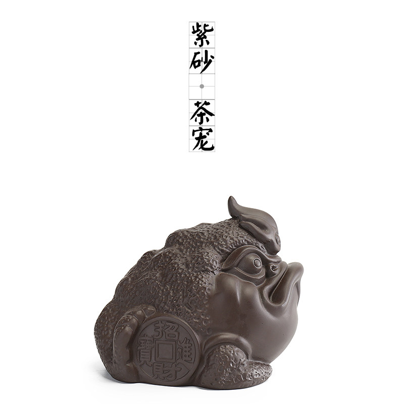 Jun's Home Purple Sand tea pet ornaments hold money Golden Toad Kung Fu tea accessories Tea play tea ceremony can raise lucky Golden Chan with