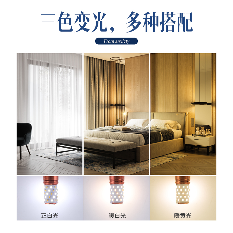 Bulb small screw port led lamp home ultra-bright energy-saving living room chandelier candle light source corn three-color e27e14