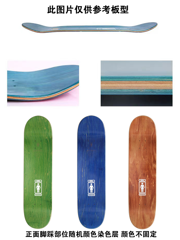 GIRL skateboard board surface imported from the United States with high elasticity and light Canadian maple wood board surface, send MOB sandpaper bearing