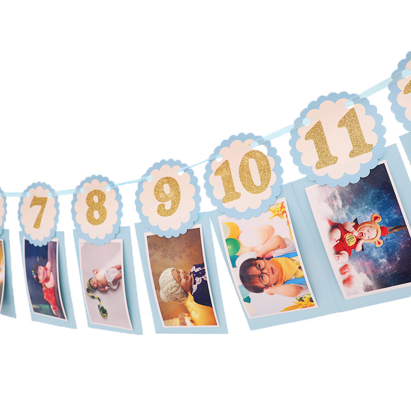 Birthday decoration party scene layout photo background wall one-year-old baby pulling flag 12-year-old memorial wall children