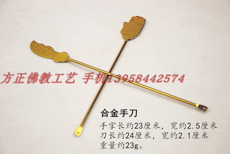 Brass solid wood feeding knife hand One knife one hand (flame mouth alloy Buddha hand out of food) Buddhist Dharma supplies