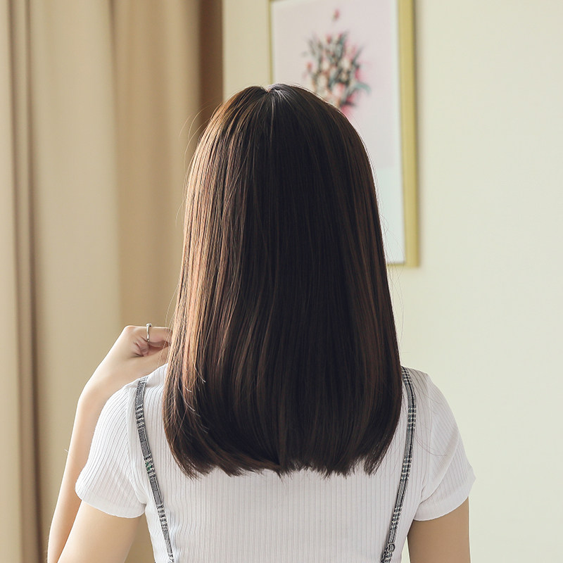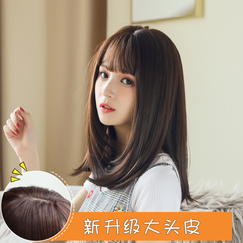 Wig set women's middle long hair Inner buckle shoulder-length collarbone hair round face pear blossom natural fluffy net red wig full head cover
