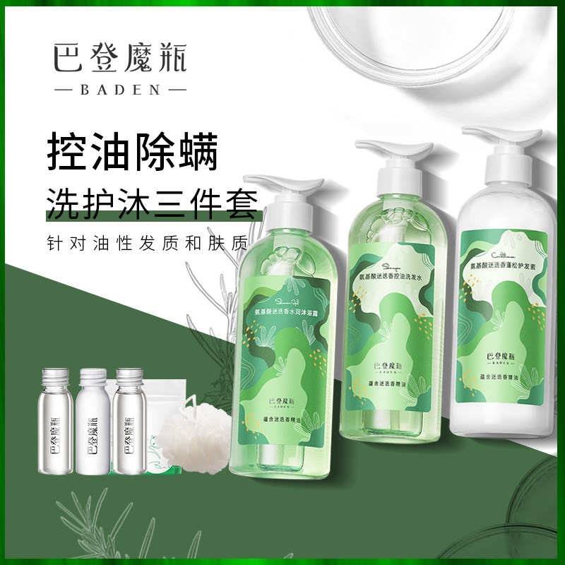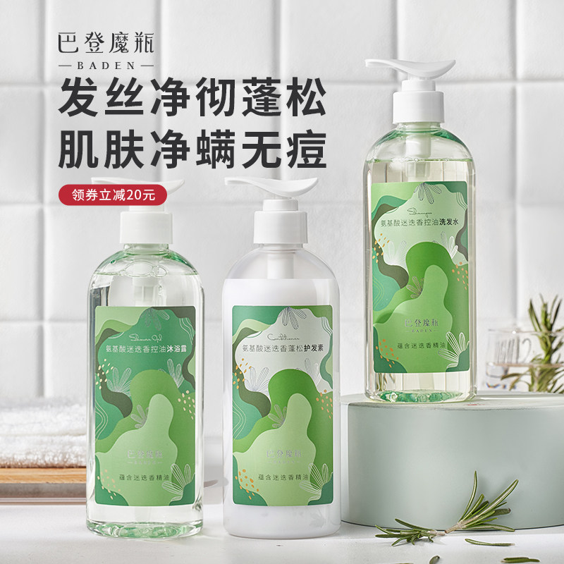 Baden magic bottle Rosemary wash and bath set Double plant amino acids for men and women moisturizing oil control in addition to mites