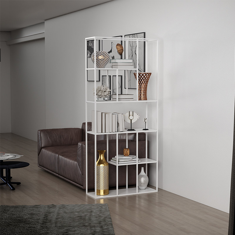 Simple modern living room sofa next to Feng Shui partition shelf decoration bedroom floor creative bookshelf iron rack