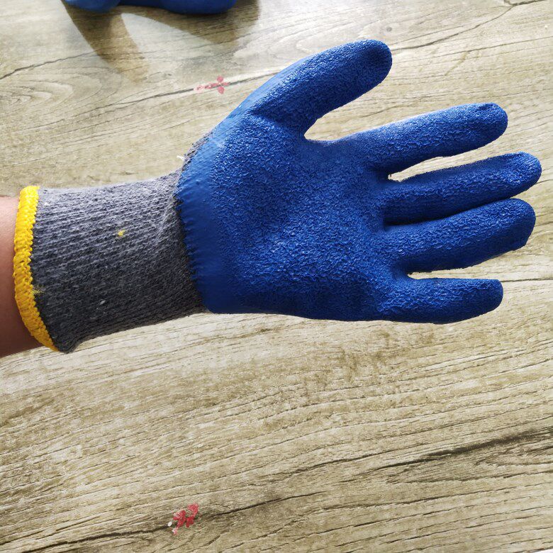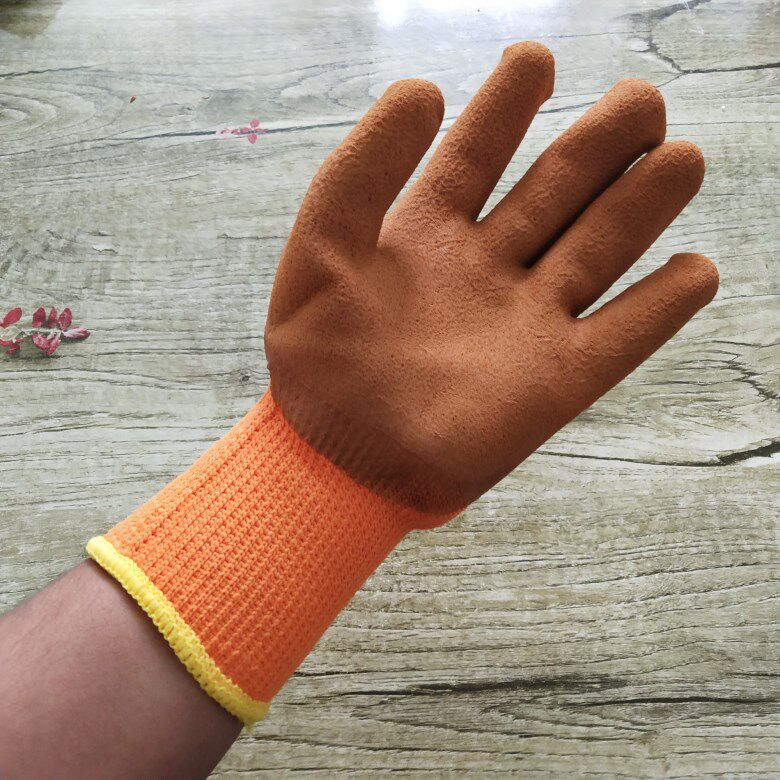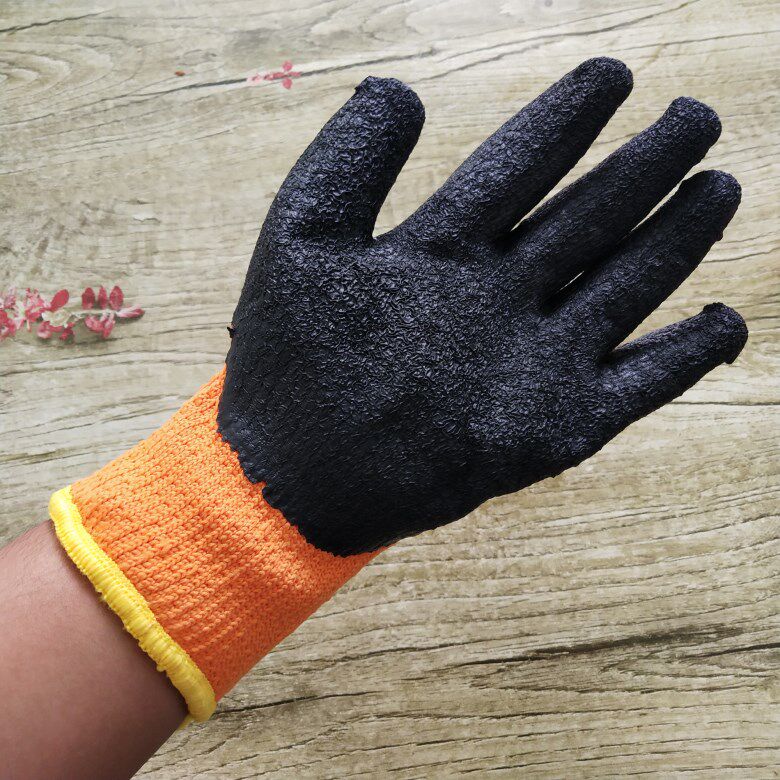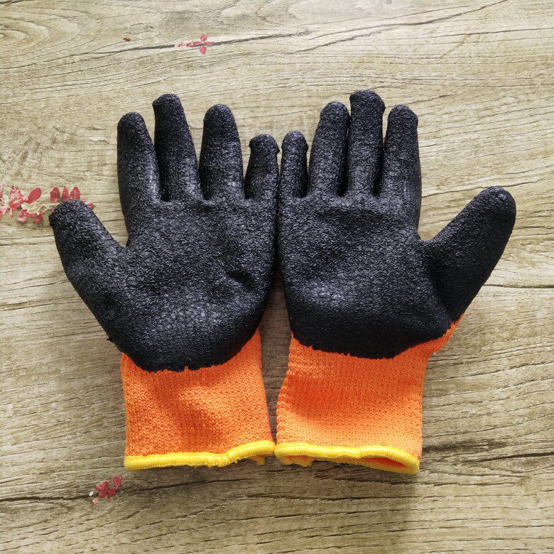 Hair ring thickened with velvety labor protective gloves abrasion resistant anti-slip waterproof mechanical plastic practical warm working dip rubber gloves
