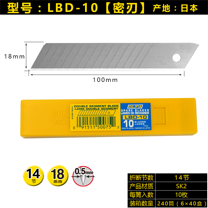Japan imports olfa blade large 18mm beauty blade industry with 14 knots blade LBD-10