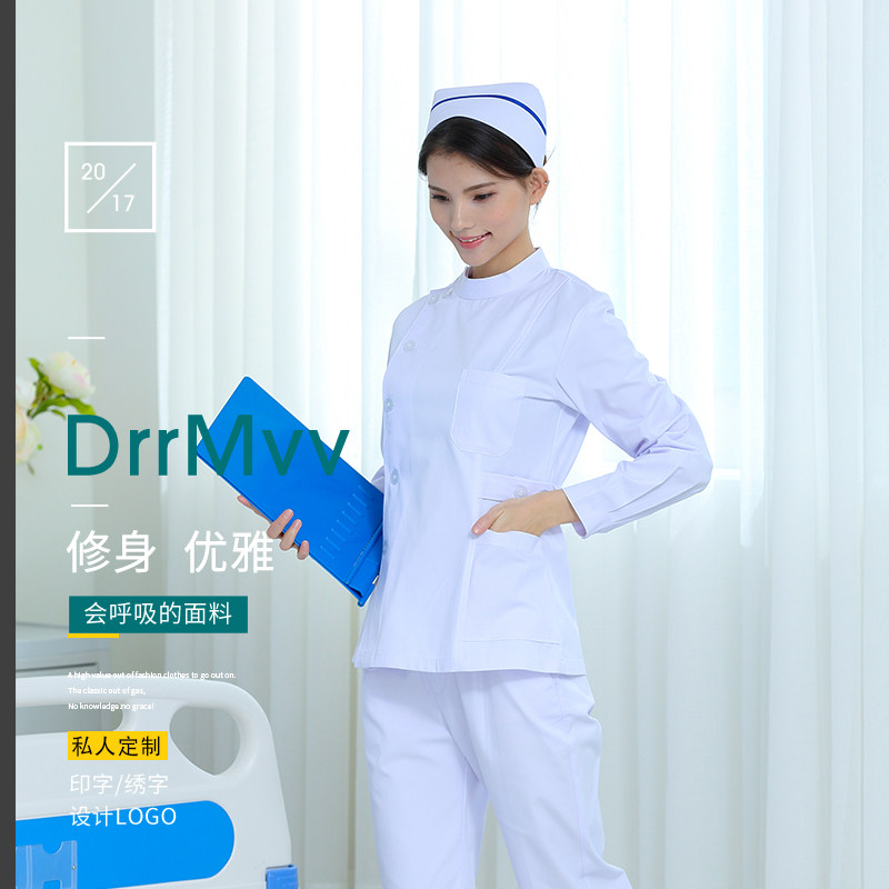 Nurse suit split set long sleeve gown women winter white oral dental overalls Bath center pedicure suit