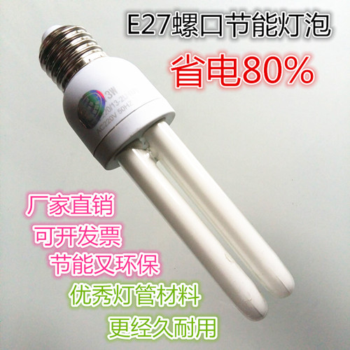 E27 screw energy-saving bulb tri-color electronic energy-saving lamp 2U straight tube white light lamp 5W7W9W13W15W20W