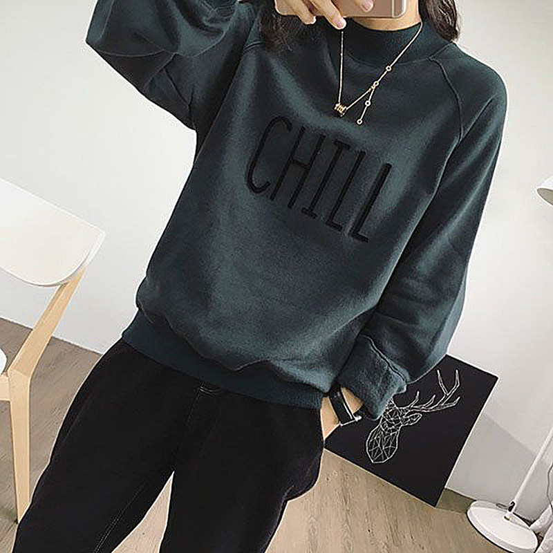 Half-height collar sweatshirt women's pullover 2022 autumn winter Korean version of the new retro green plus velvet plus thick warm loose tops for women