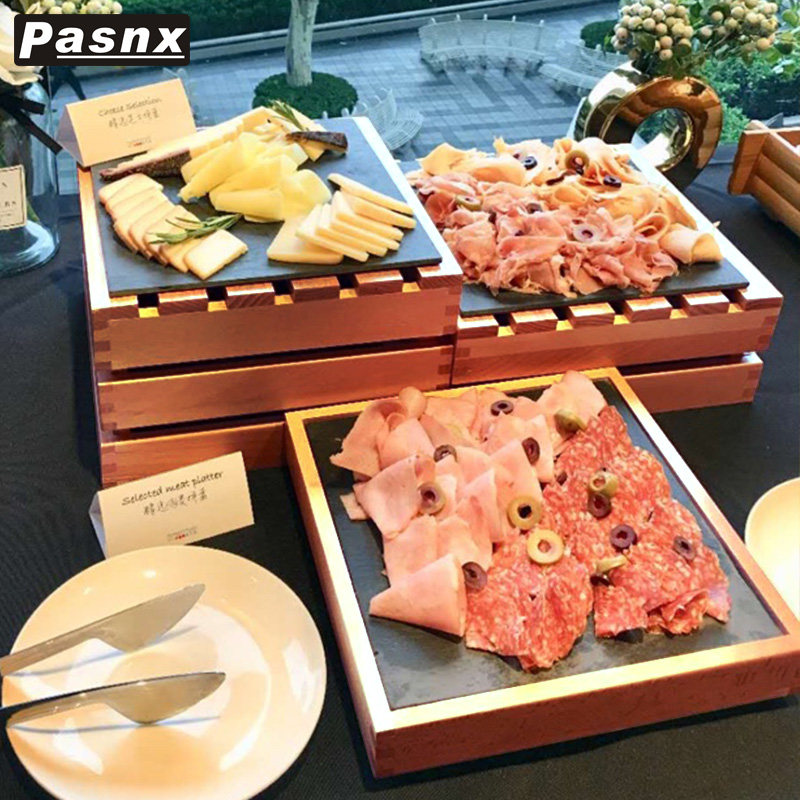 Wooden buffet dessert table decoration display stand set cold meal meeting cake display table dessert shelf creative tea break